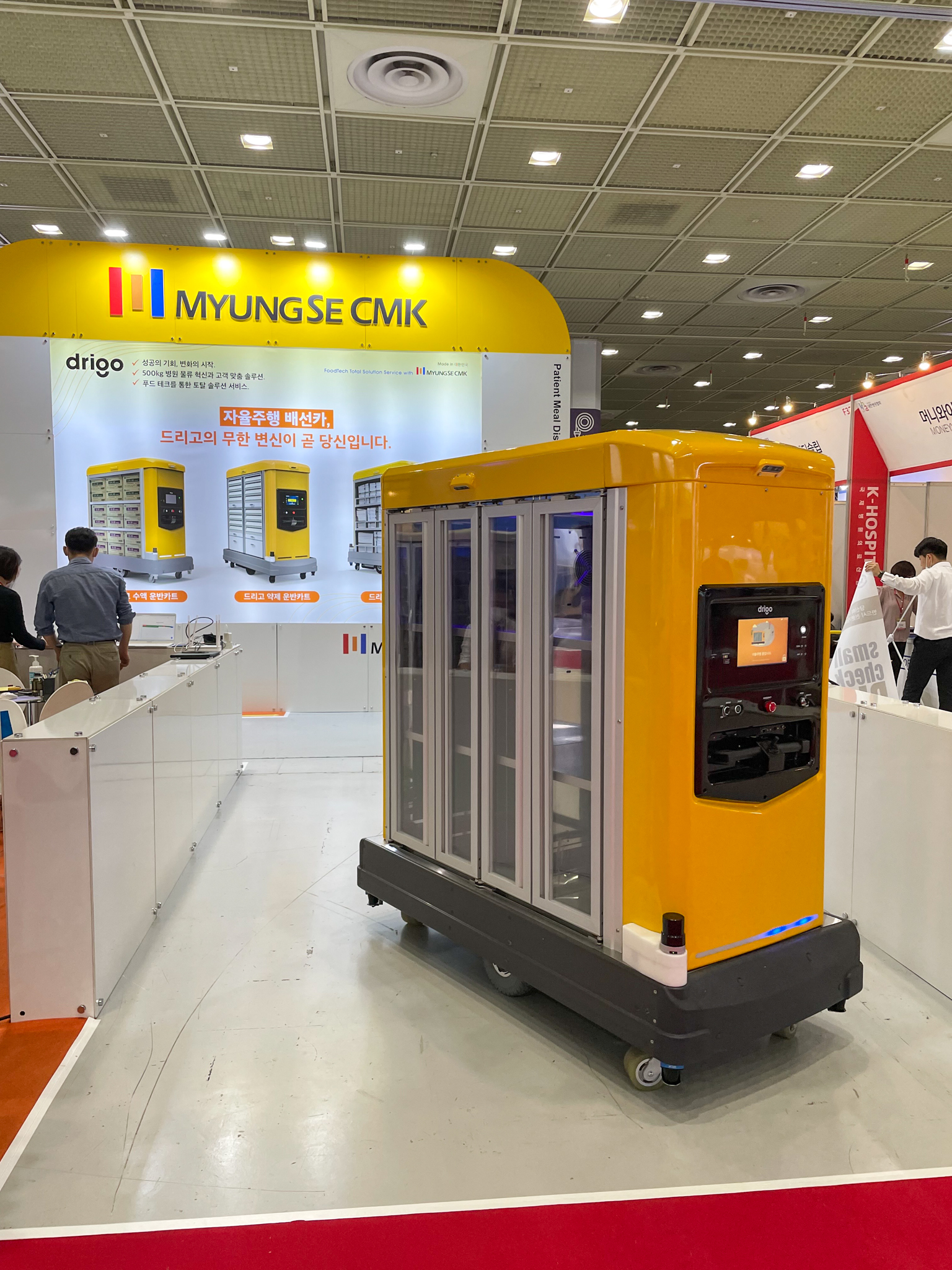 밥이 식지 않게 운반하는 자율주행 카트도 눈에 띄었습니다. 환자식을 따뜻하고 신선하게 제공할 수 있는 장점이 있겠죠? 자율주행 카트는 배식뿐만 아니라 약재나 수액을 운반하는 용도로도 활용이 가능하다고 합니다다.