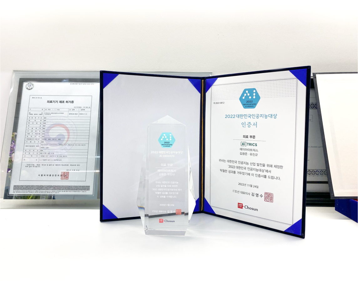 연말의 꽃은 시상식이죠😊 에이아이트릭스가 2022년 한해를 마무리하며 값진 상을 받았습니다. IT조선이 주최한 ‘대한민국 인공지능 대상’ 시상식에서 의료부문 대상을 수상했어요!