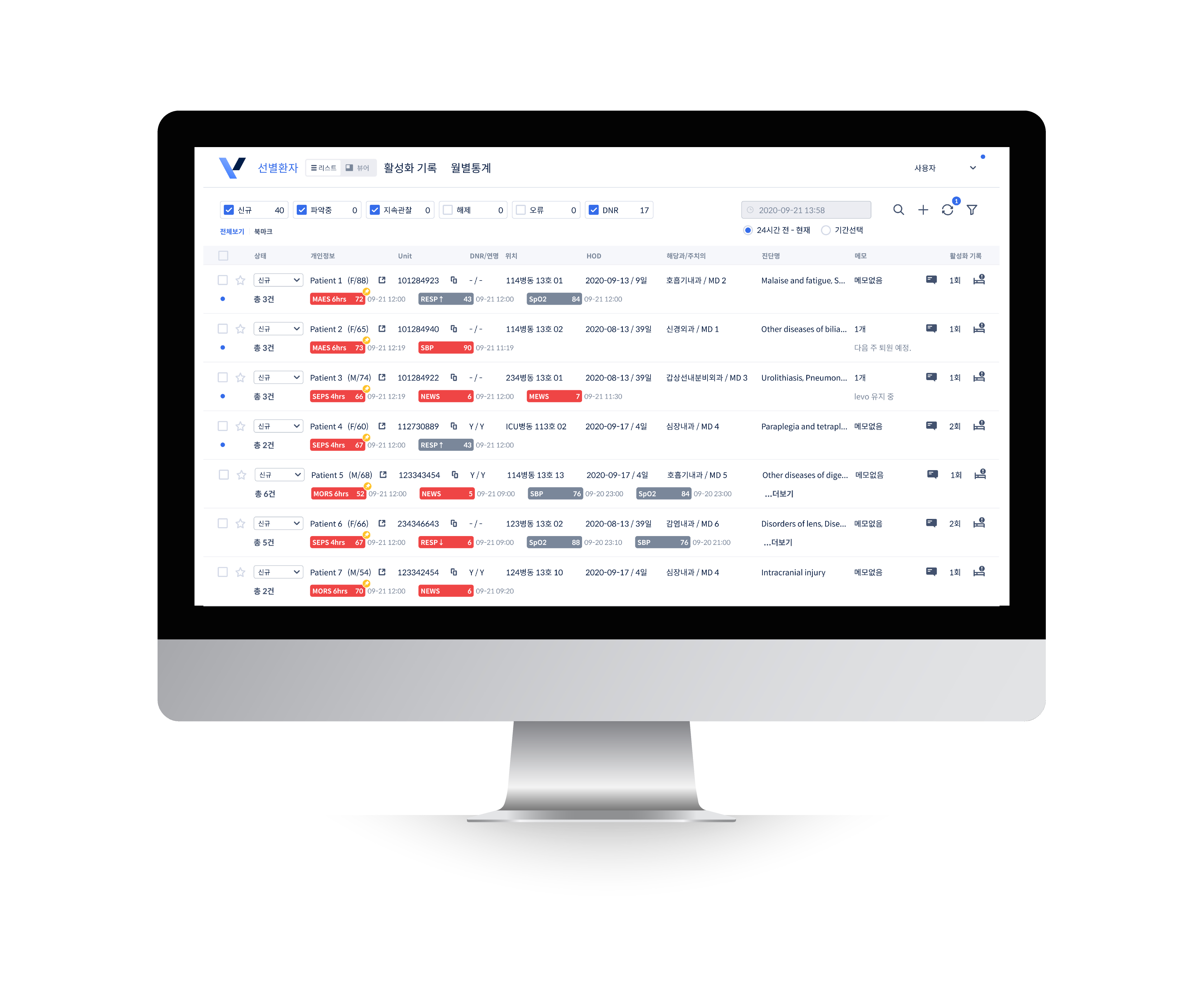 바이탈케어는 중환자실 환자의 6시간 이내 사망, 일반 병동 환자의 6시간 이내 사망, 예기치 않은 중환자실 전실, 심정지 및 4시간 이내 패혈증 발생 위험도를 예측하는 인공지능 모니터링 솔루션입니다. 특히 국내 최초 및 유일하게 일반 병동 내 패혈증, 사망, 예기치 않은 중환자실 전실에 대한 예측 성능과 중환자실에서 사망 발생 예측 성능을 입증했어요.