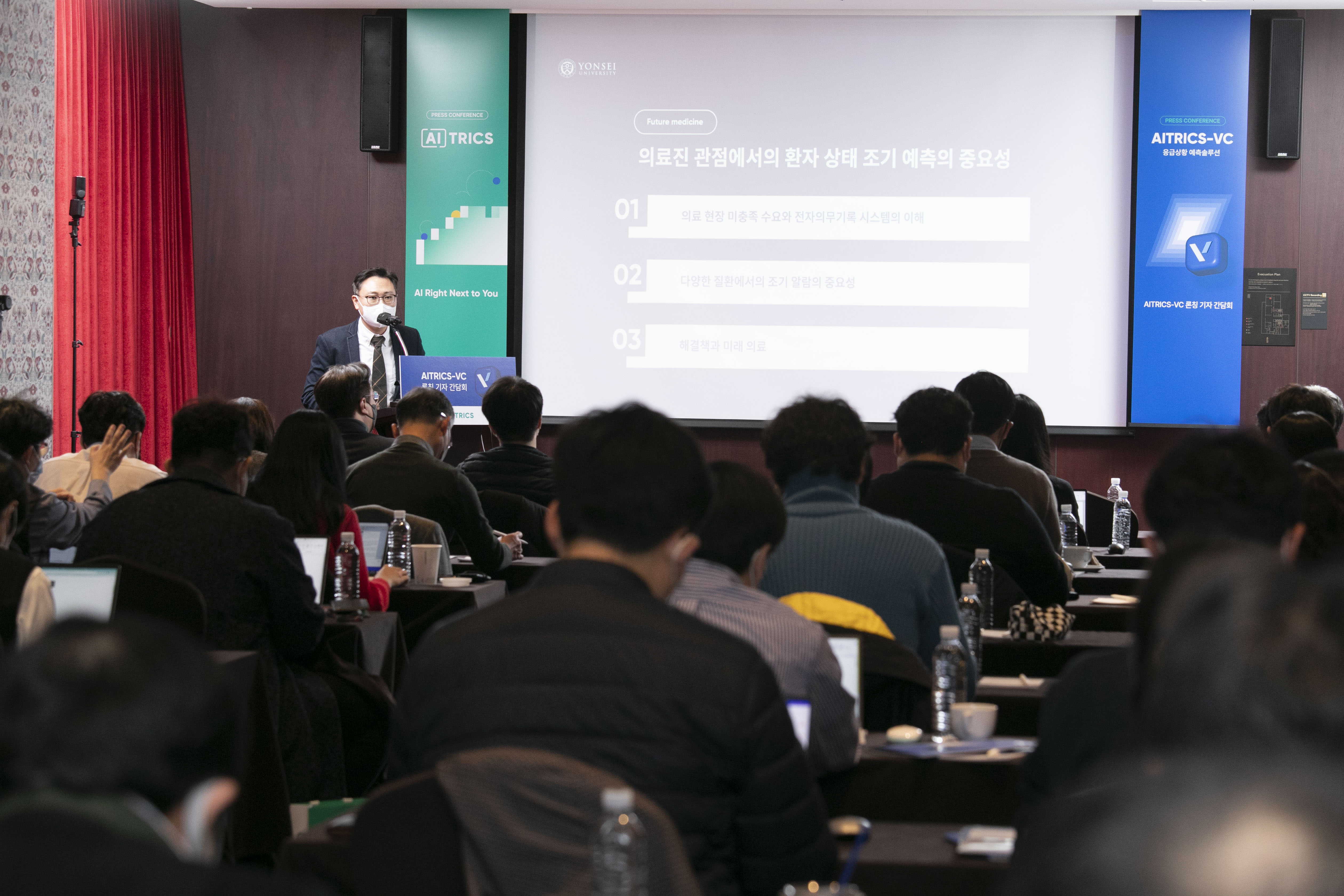 먼저 에이아이트릭스 김광준 대표의 환영사와, 에이아이트릭스가 가고자 하는 길에 대한 발표가 있었어요. 그리고 Medical AI 부문의 안병은 총괄이 바이탈케어에 대해 자세히 설명하는 시간을 가졌습니다.