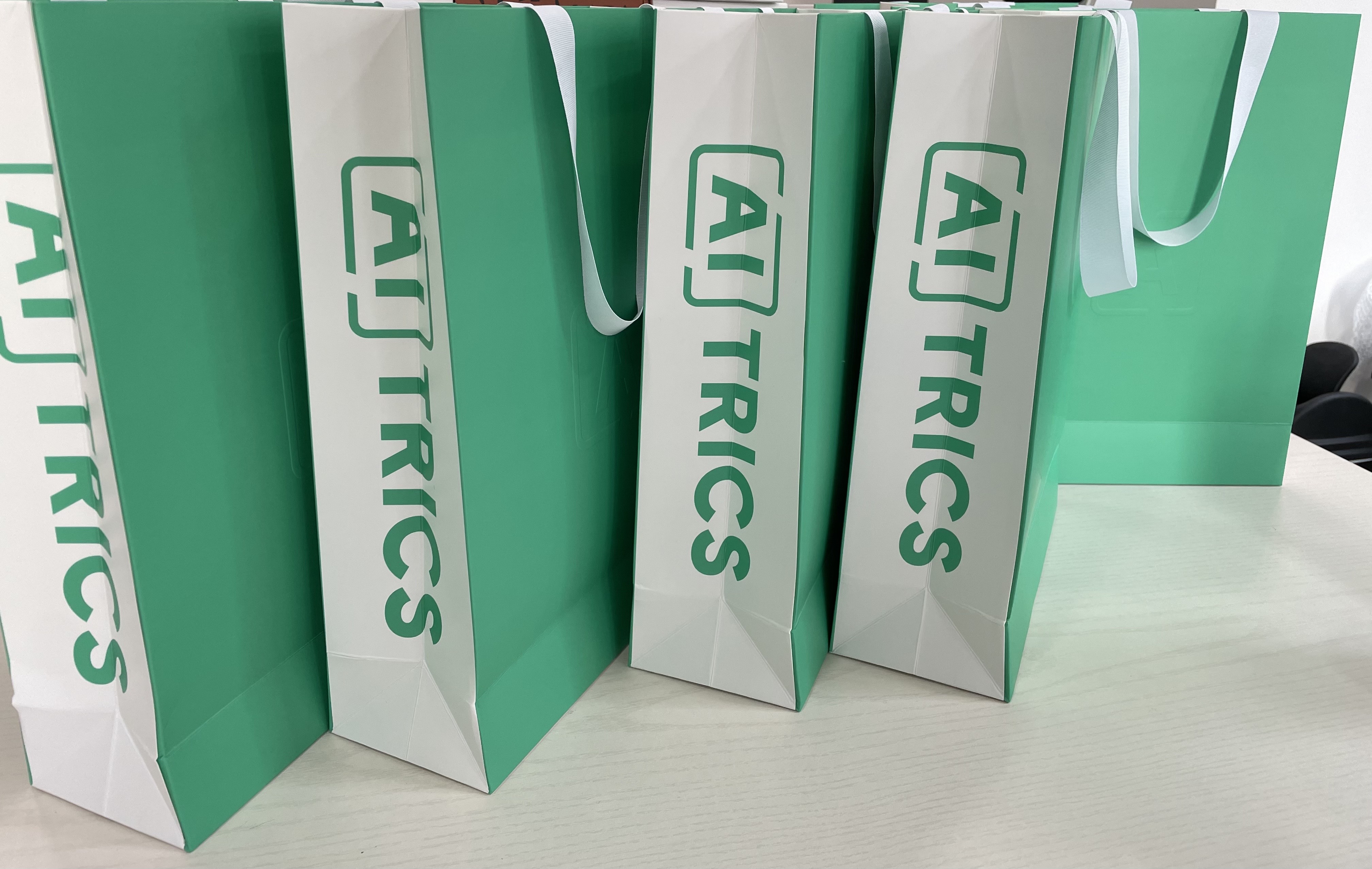 그리고 하이라이트!! 쨍쨍한 색감과 안전한 두께감을 자랑하는 쇼핑백을 제작했답니다. 에이아이트릭스 임직원을 포함해 외부 손님들께도 활용도가 높아서 가장 호응을 받은 제품이에요. 브랜드 디자이너의 감각이 돋보이는 작업이었습니다.