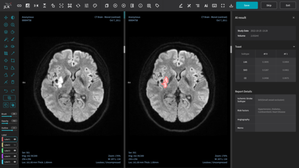 이어 이 관계자는 "의료AI 솔루션에 첫 보험수가가 적용된 만큼 올해부터는 본격적인 매출이 발생할 것으로 보고 있다"라며 "JBS-01K 뿐만아니라 CT와 MRI 에서 사용할 수 있는 뇌출혈, 뇌경색까지 각 프로세스별로 분석 가능한 11개의 솔루션 개발을 이미 마친 상태로 향후 더 많은 뇌졸중 관련 솔루션을 의료시장에 선보일 것"이라 덧붙였다.