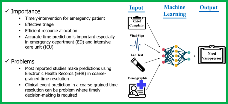 좀 더 자세히 말씀드리면, 저희는 해당 논문을 통해 환자의 전자건강기록(EHR)을 활용하여, 응급실과 중환자실에서 기존의 제품보다 좀 더 정밀한 환자의 상태 악화시간을 예측하는 모델을 제안했습니다. 📖🙂