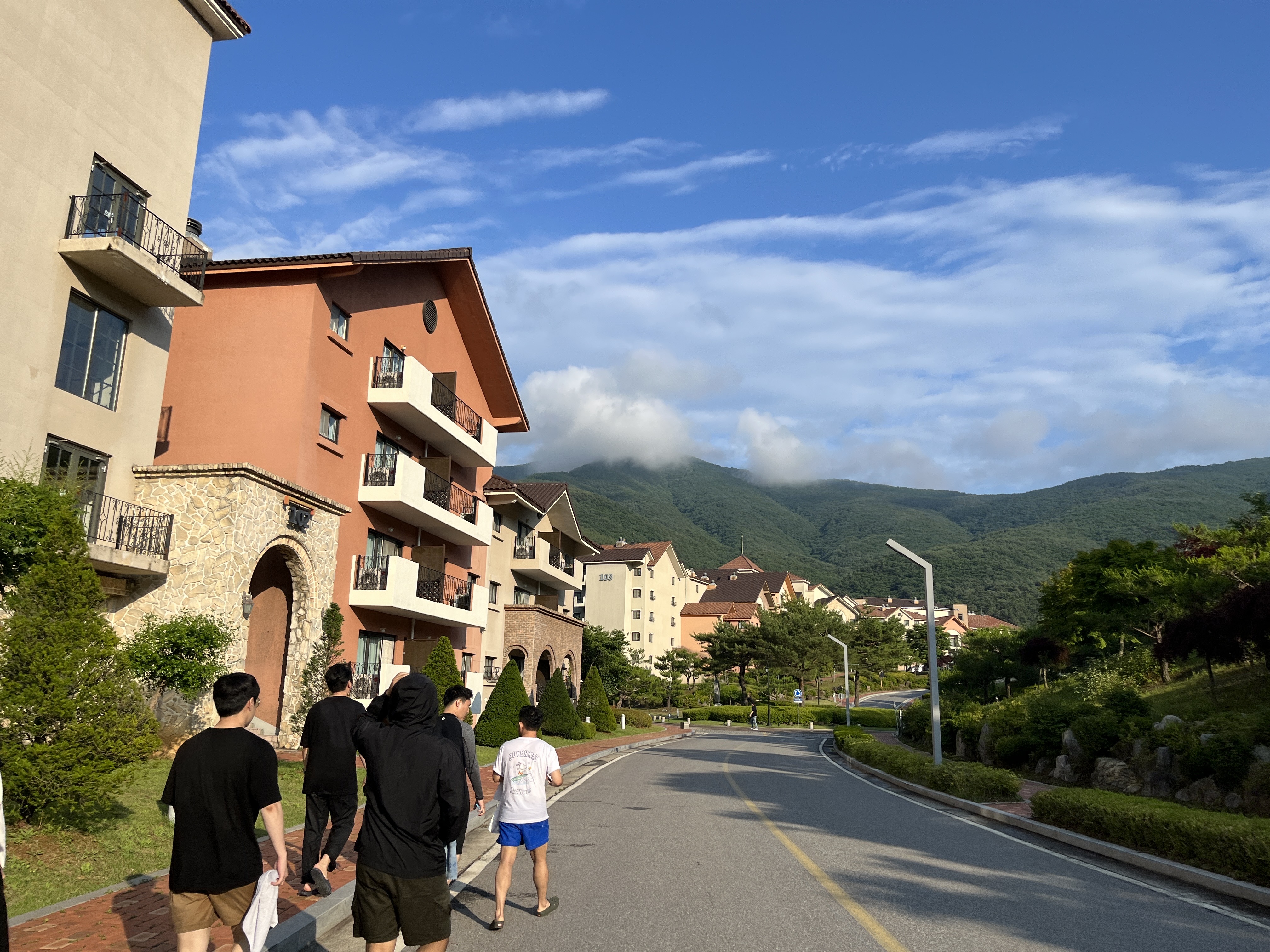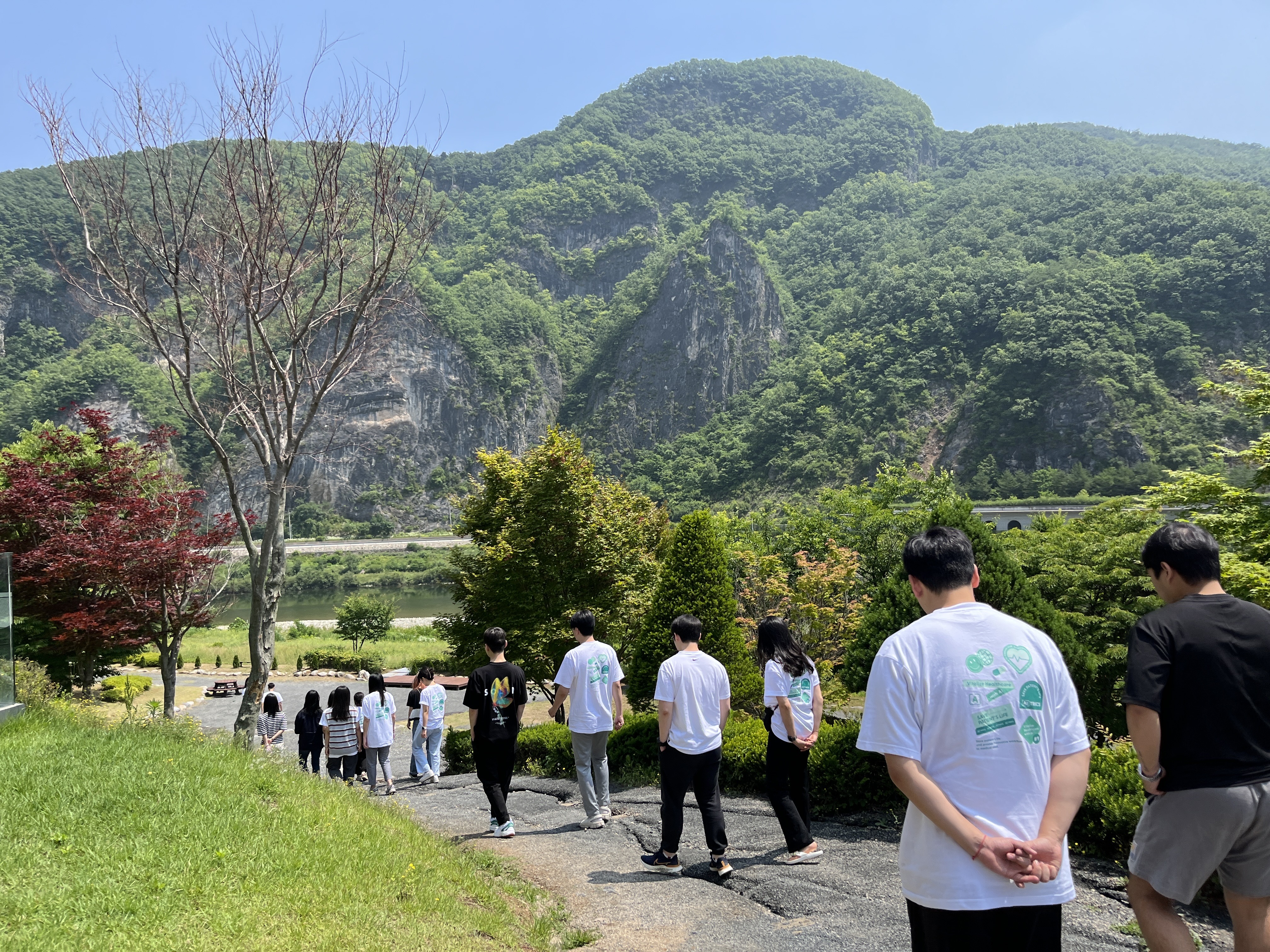 다음 날 숙소 앞 예쁜 산책길도 걷고, 단체 사진도 찰칵📸