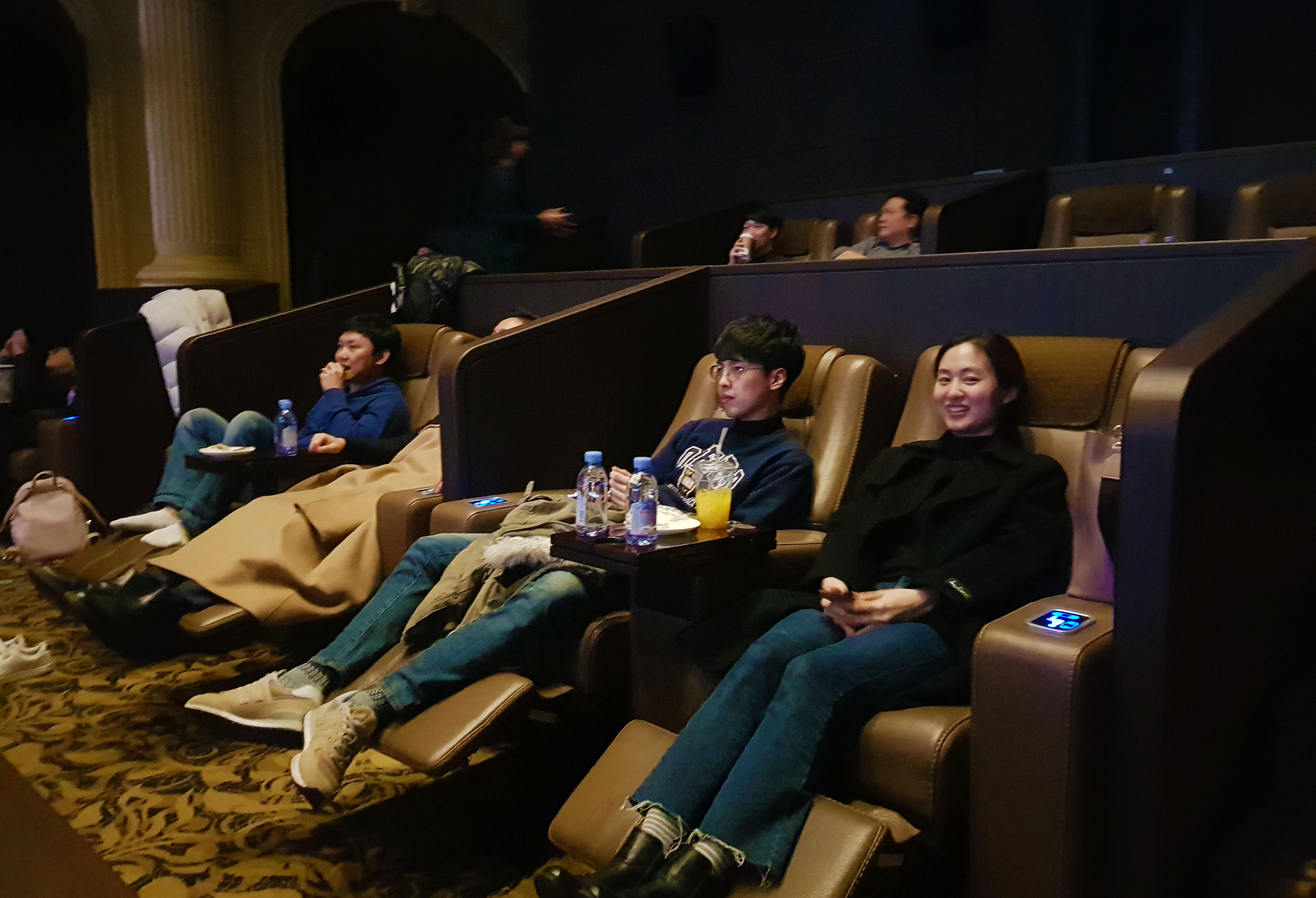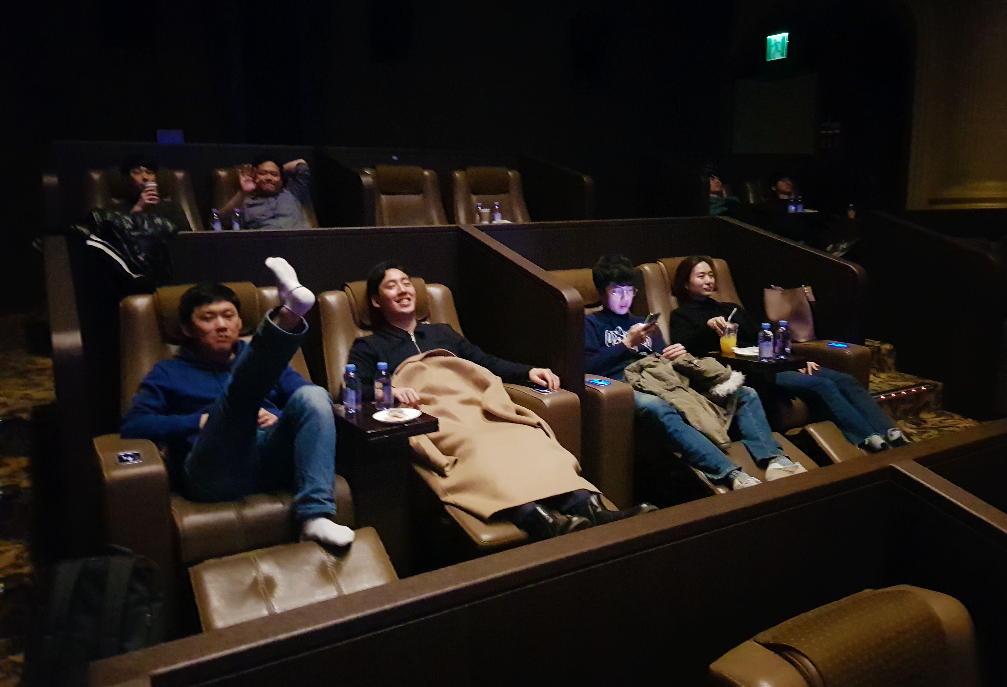 도란도란 즐거운 시간을 보내며 영화 시작을 기다리는 중