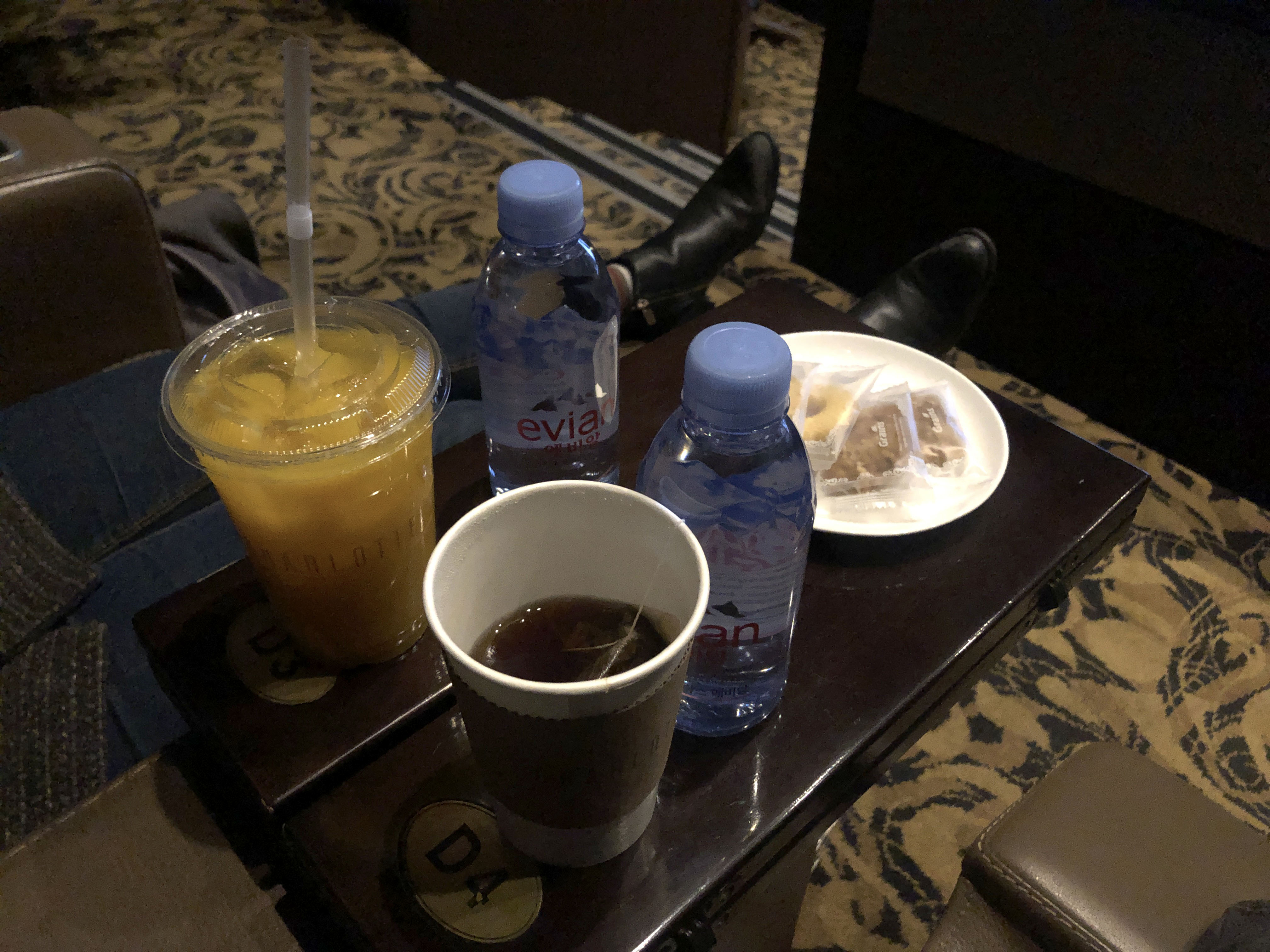 영화 시작 전, 럭셔리한 샤롯데 라운지에서 프리드링크를 한잔씩 마시며, 여유롭게 웨이팅-