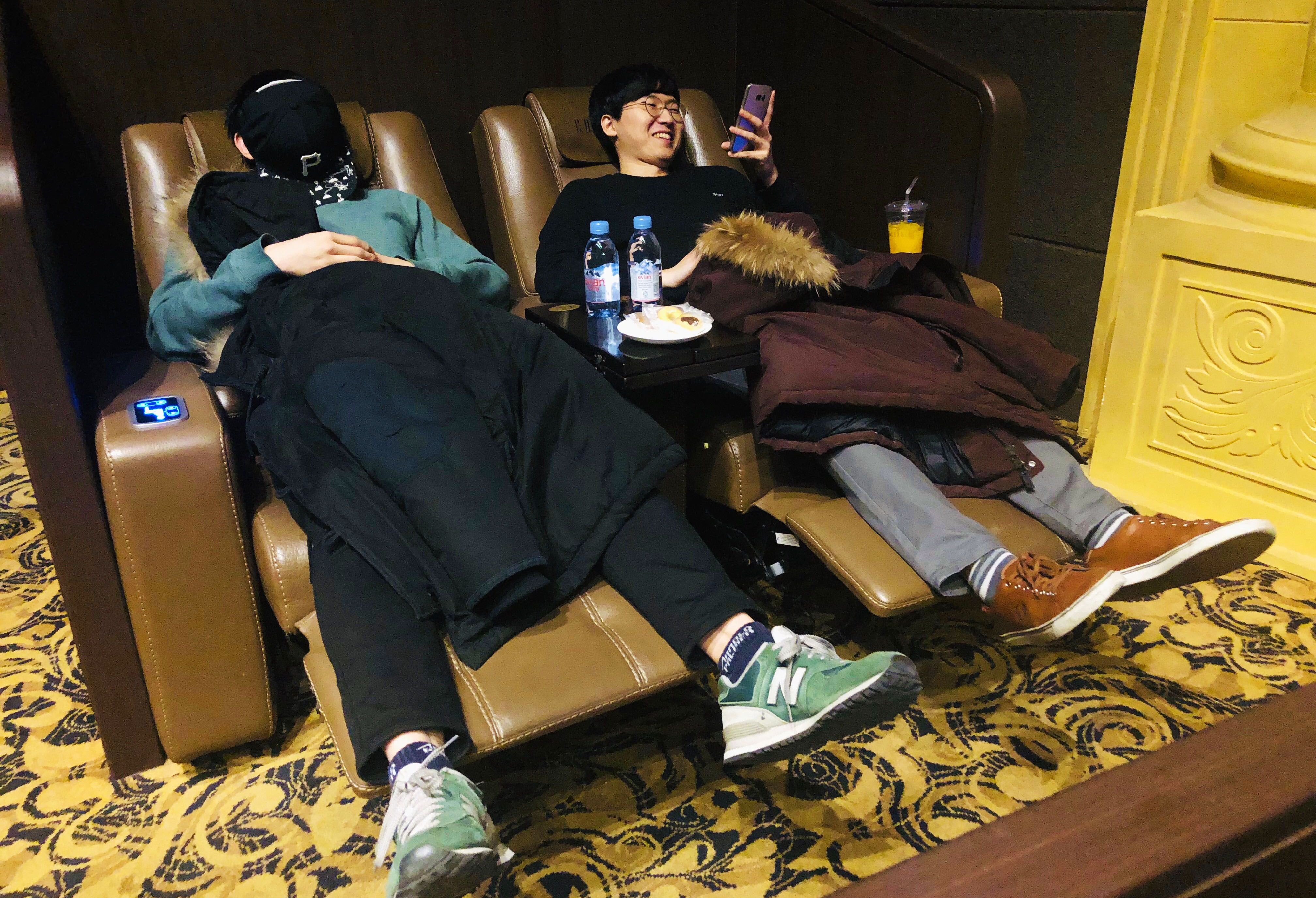 영화 시작 전, 딥한 휴식을 취하시는 분들 가운데 카메라를 바라봐주시는 분은 한분밖에 없네요