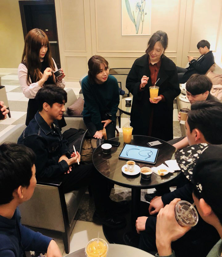 회사 밖이라그런지 다들 표정이 한층 밝아졌어요