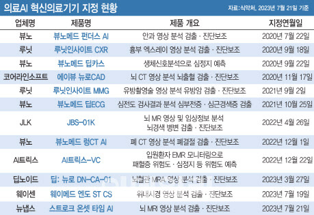이 분야에서 가장 먼저 식품의약품안전처의 혁신의료기기로 등록된 뷰노(338220)의 ‘뷰노메드 딥카스’는 올 상반기에만 31억원의 매출을 내며 영상진단 보조소프트웨어인 ‘뷰노메드 체스트 엑스레이’, ‘뷰노메드 딥브레인’ 등의 매출(7억원)을 능가했다.