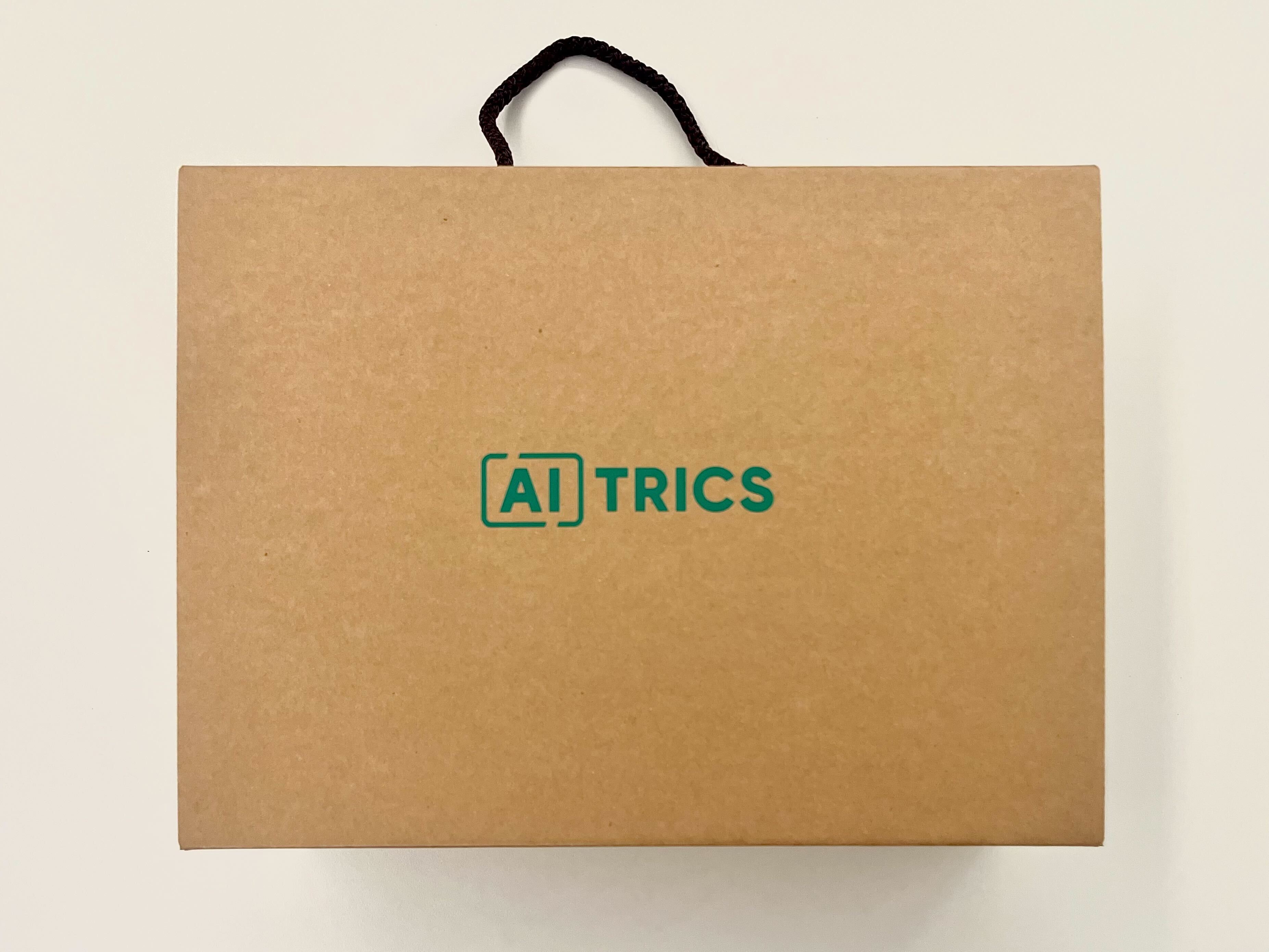친환경 박스에 적힌 AITRICS의 초록색 로고가 마치 패키지에 생명력을 불어넣는 것 같지 않나요?!🌬️