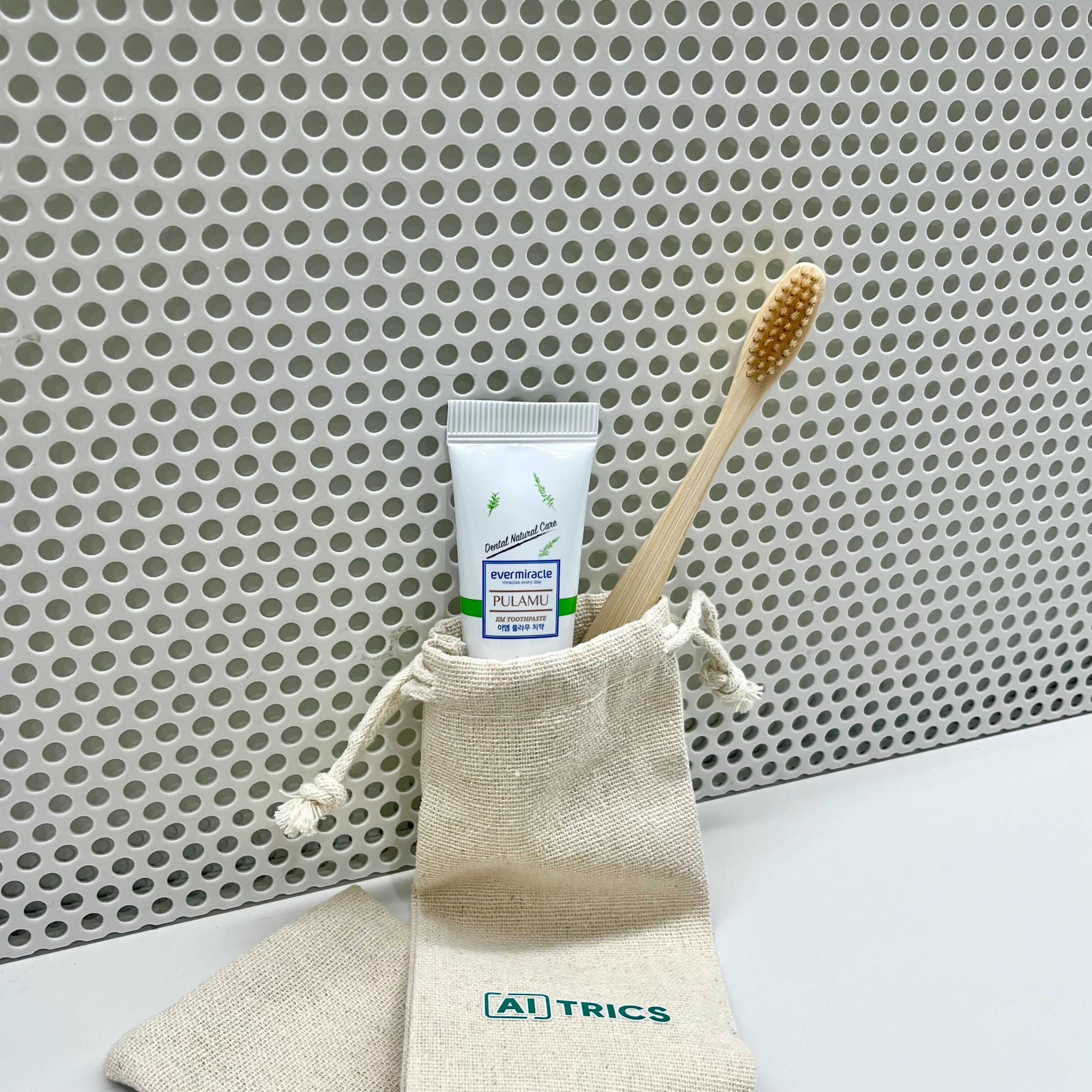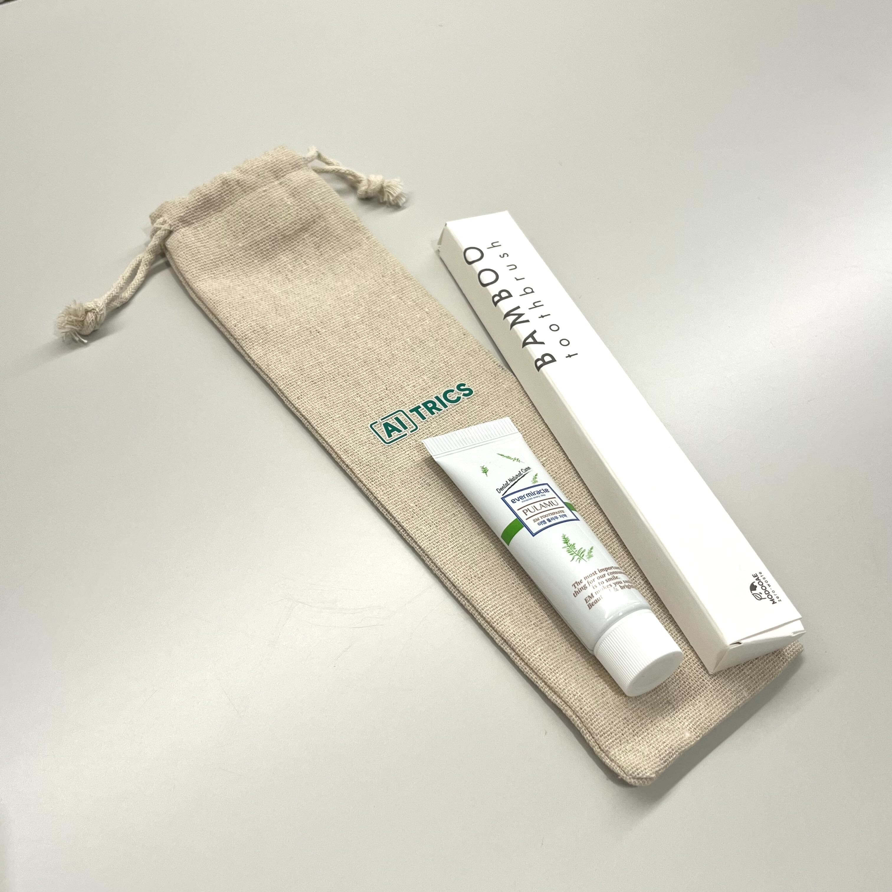 이제는 필수품을 넘어 기본템이 되어버린 아이템이죠, 바로 점심 먹고 나른한 오후🌞를 상쾌한 기분으로 만들어줄 칫솔치약 세트입니다.🫧🪥 입사 첫날 자칫하면 놓고 오기 쉬운 아이템이기도 한데요. AITRICIAN의 클린한 하루를 위해 에이아이트릭스가 미리 준비했습니다. 특히 친환경 컨셉에 맞게 분해가 잘되는 대나무🎋 칫솔로 구성했는데요. 칫솔을 보관할 수 있는 친환경 파우치👝는 덤입니다!