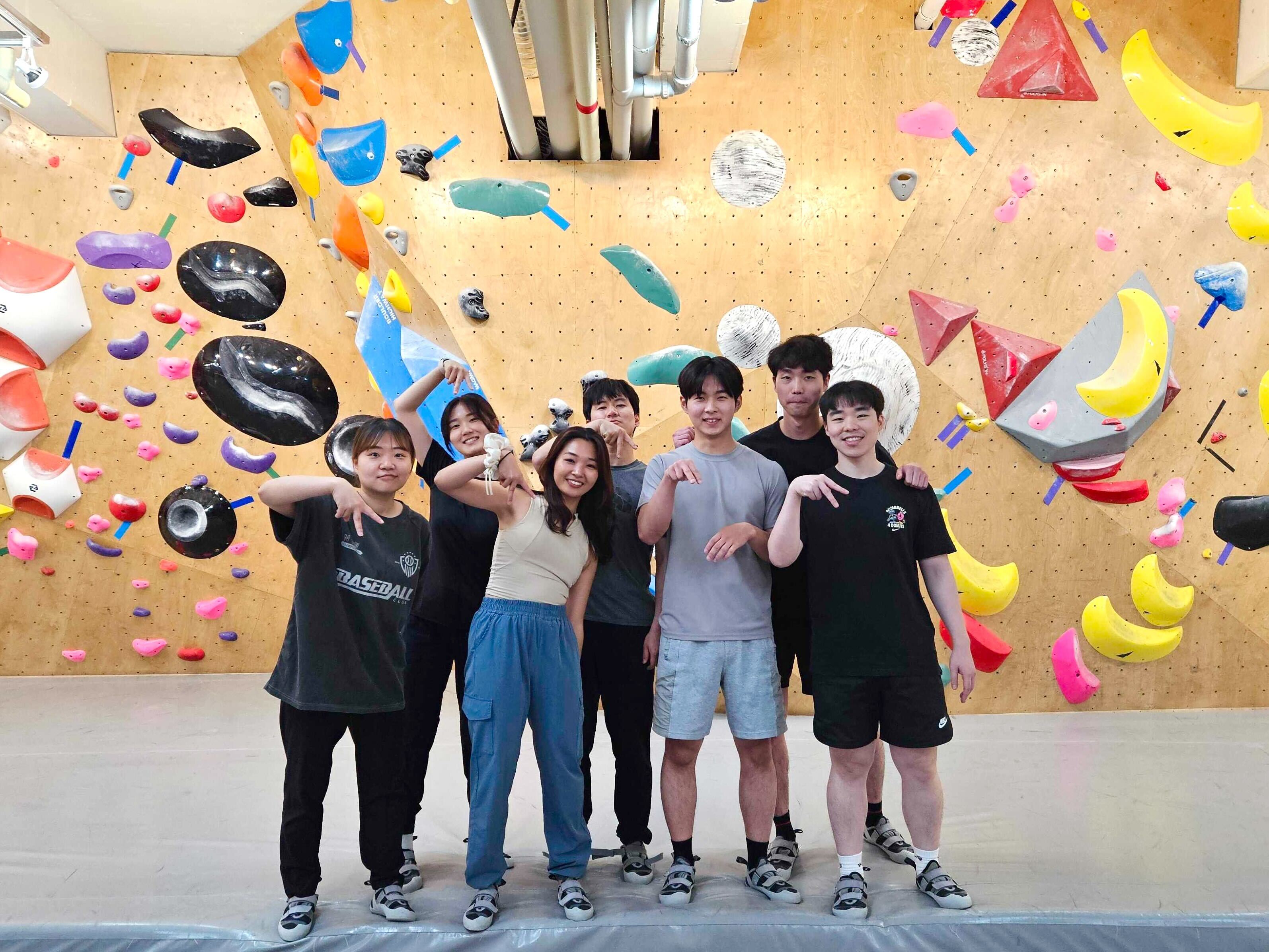 다음 조는 회사 인근 실내 클라이밍 센터에서 클라이밍 일일체험강습을 받았습니다.🥾 무려 일곱 명 중 다섯 명이 클라이밍에 처음 도전하는 입문자여서 전문 강사님👩🏫의 코치가 필수였어요. 무엇보다 중요한 건 안전!!👷♂️ 어떻게 안정적으로 착지하는지부터 클라이밍의 A-Z를 전수 받고 재미있게 체험할 수 있었습니다.