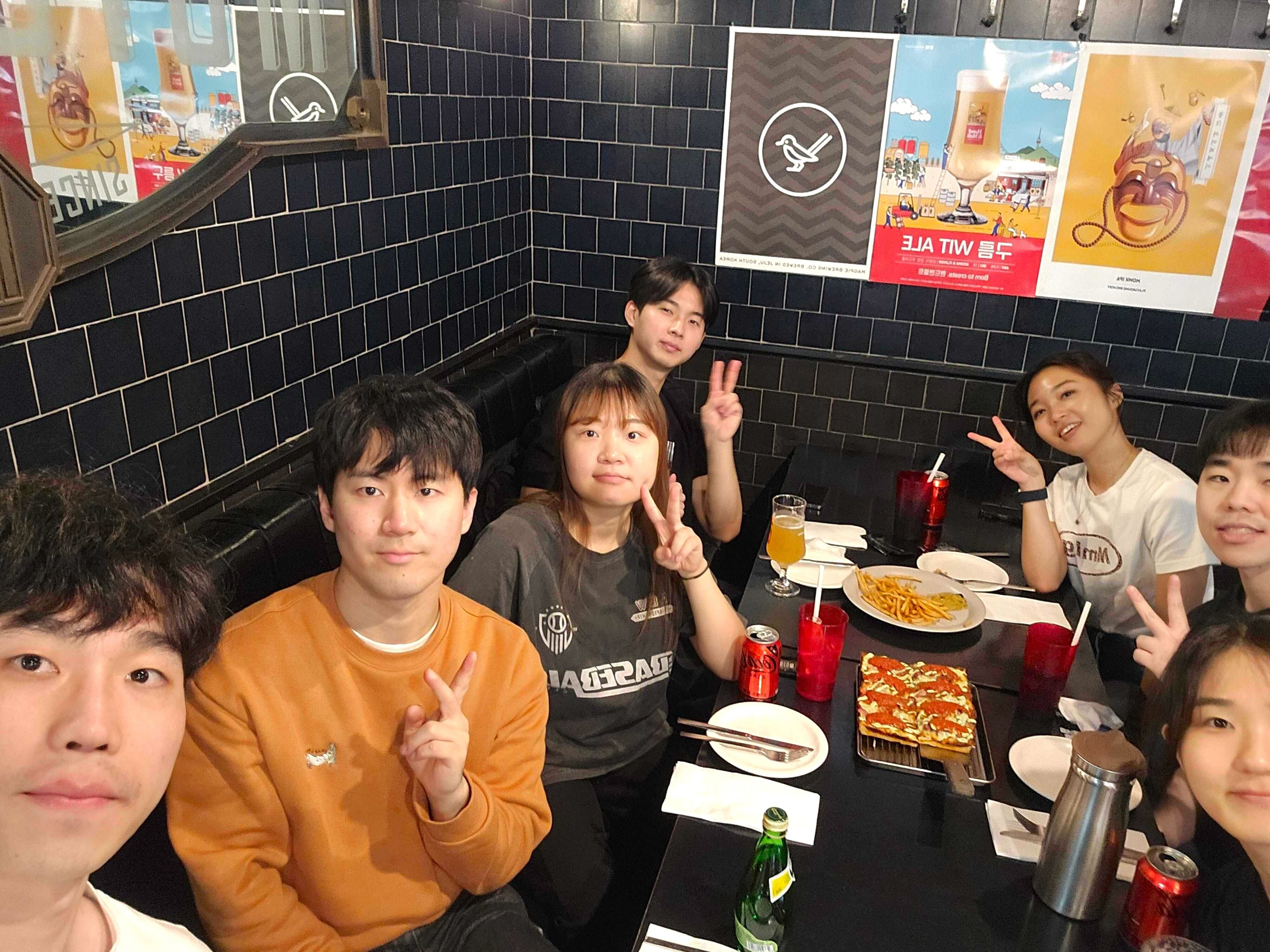 클라이밍이 끝난 후에는 디트로이트 피자🍕와 맥주🍺를 즐기며 각자 팀에서 어떤 일을 하고 있는지, 평소에 어떤 운동🏃♀️을 즐겨하는지 이야기하며 즐거운 시간을 보냈습니다. 다들 활동적인 것을 좋아하는 공통분모 덕분에 다음 클라이밍을 기약할 만큼 금세 가까워질 수 있었습니다.🤗