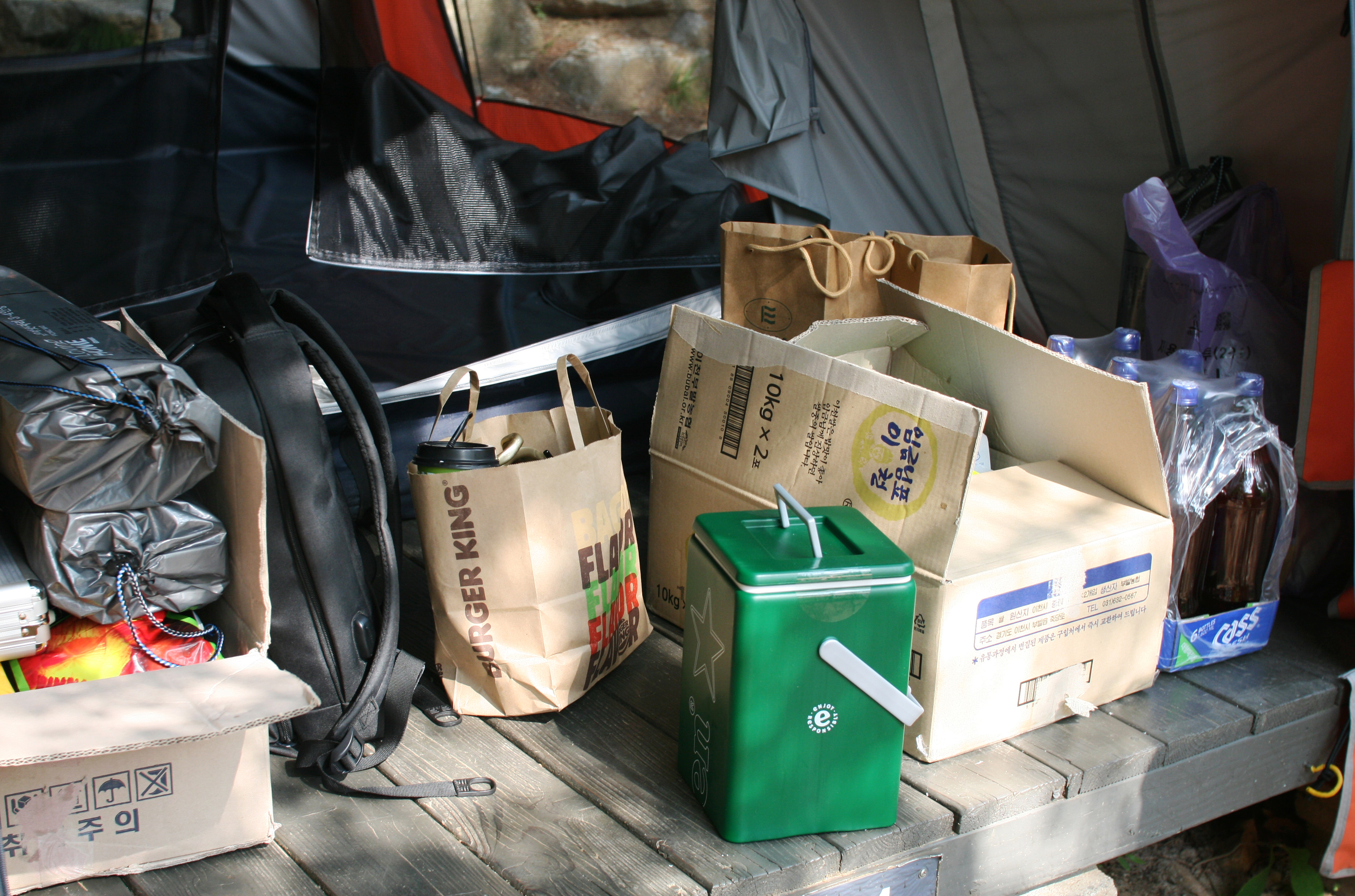 텐트에 도착해 짐을 풀어놓고 보니 정말 한 가득이네요