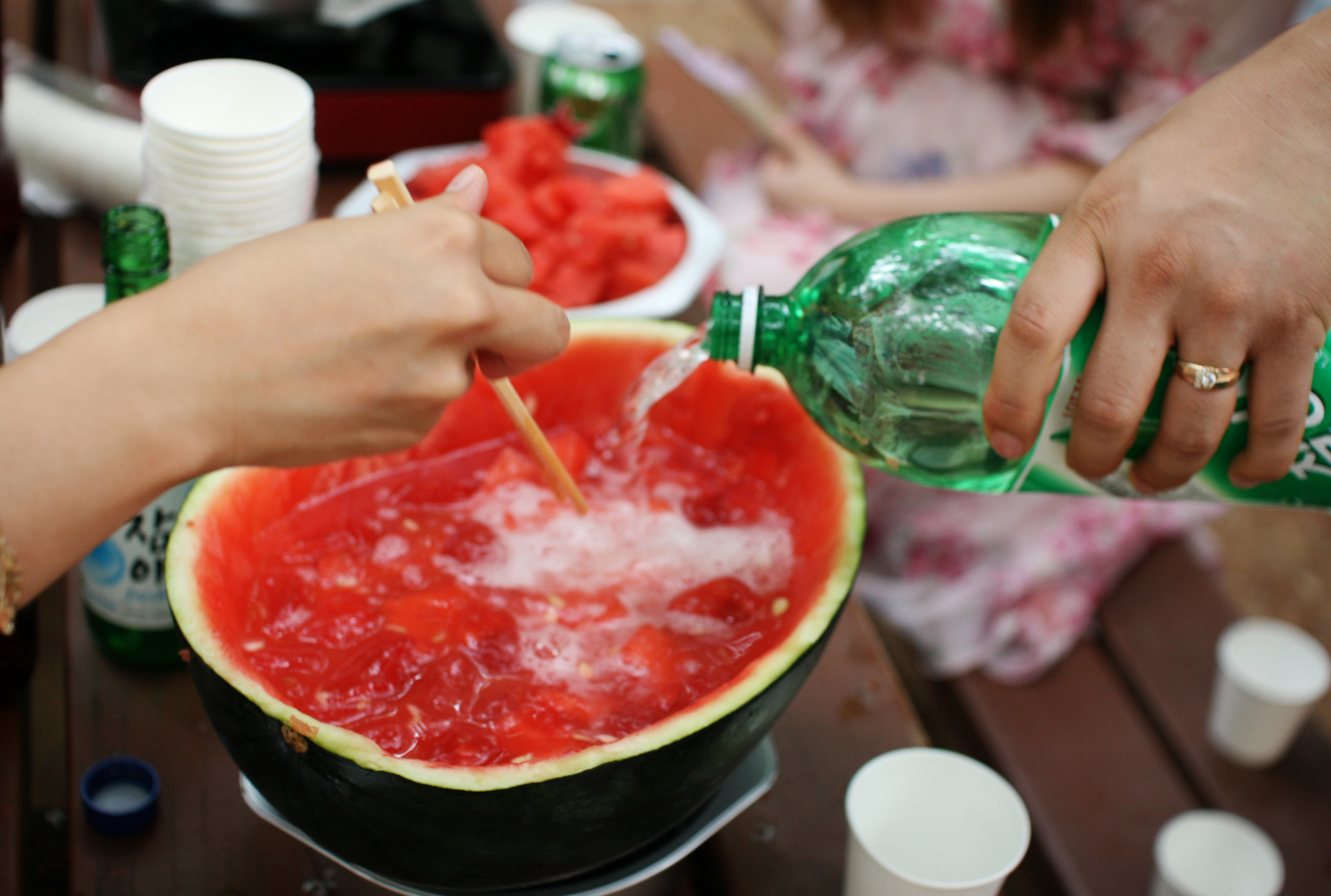 그리고 이번 캠핑에서 인기만점이었던 수박화채…가 아닌 수박주!
