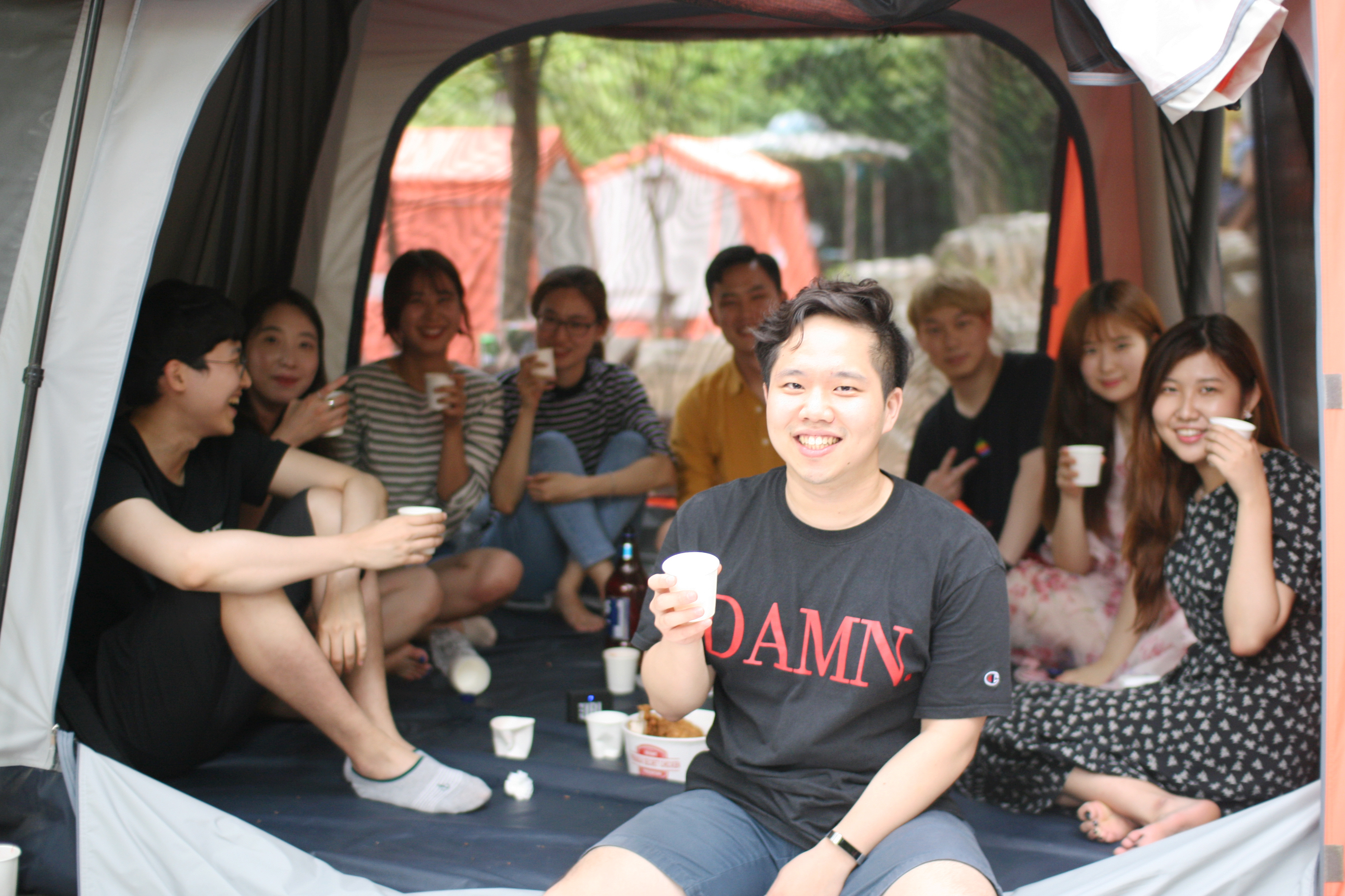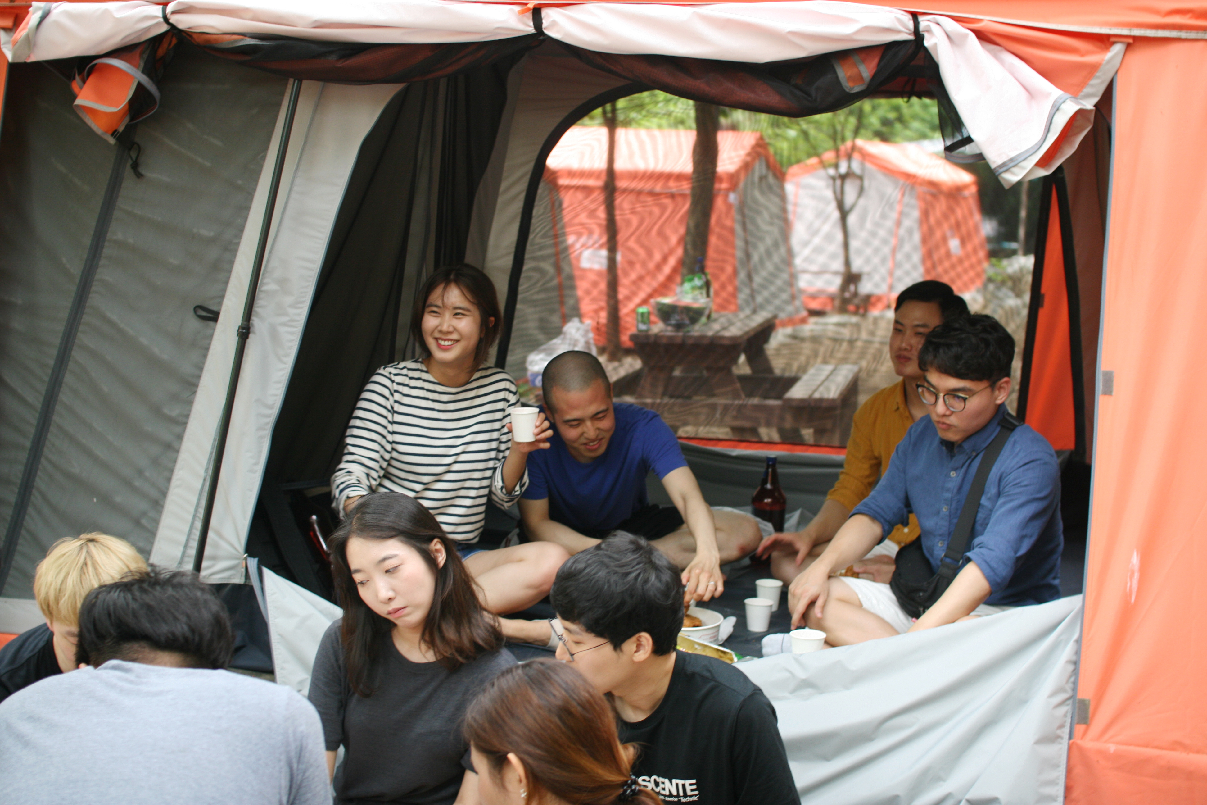 텐트 안에서 미리 치킨 한조각씩을 뜯으며 즐거운 시간을 보내보아요 🍗🍗
