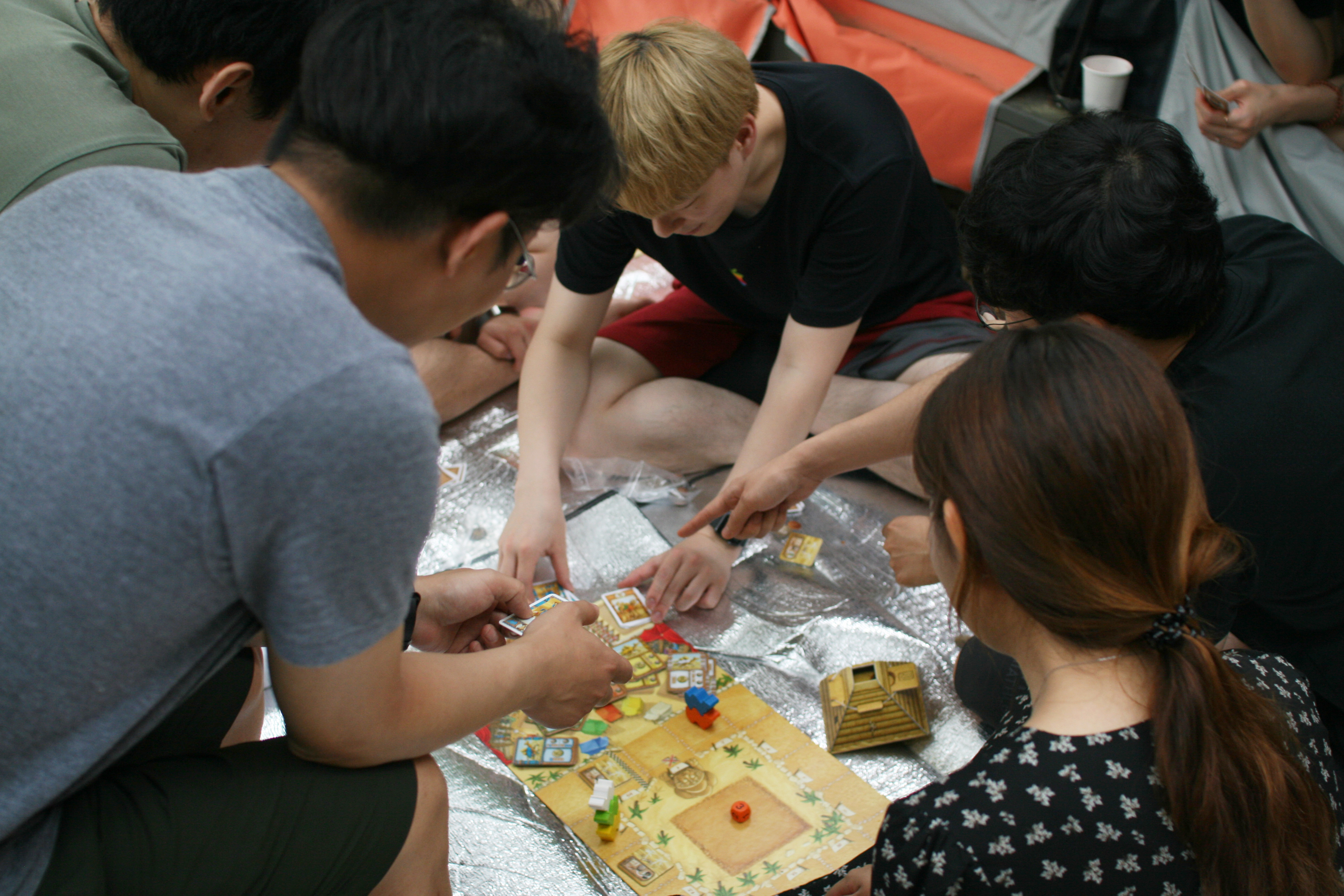 그리고 다시 텐트로 돌아와 삼삼오오 모여 다양한 놀이를 시작~
