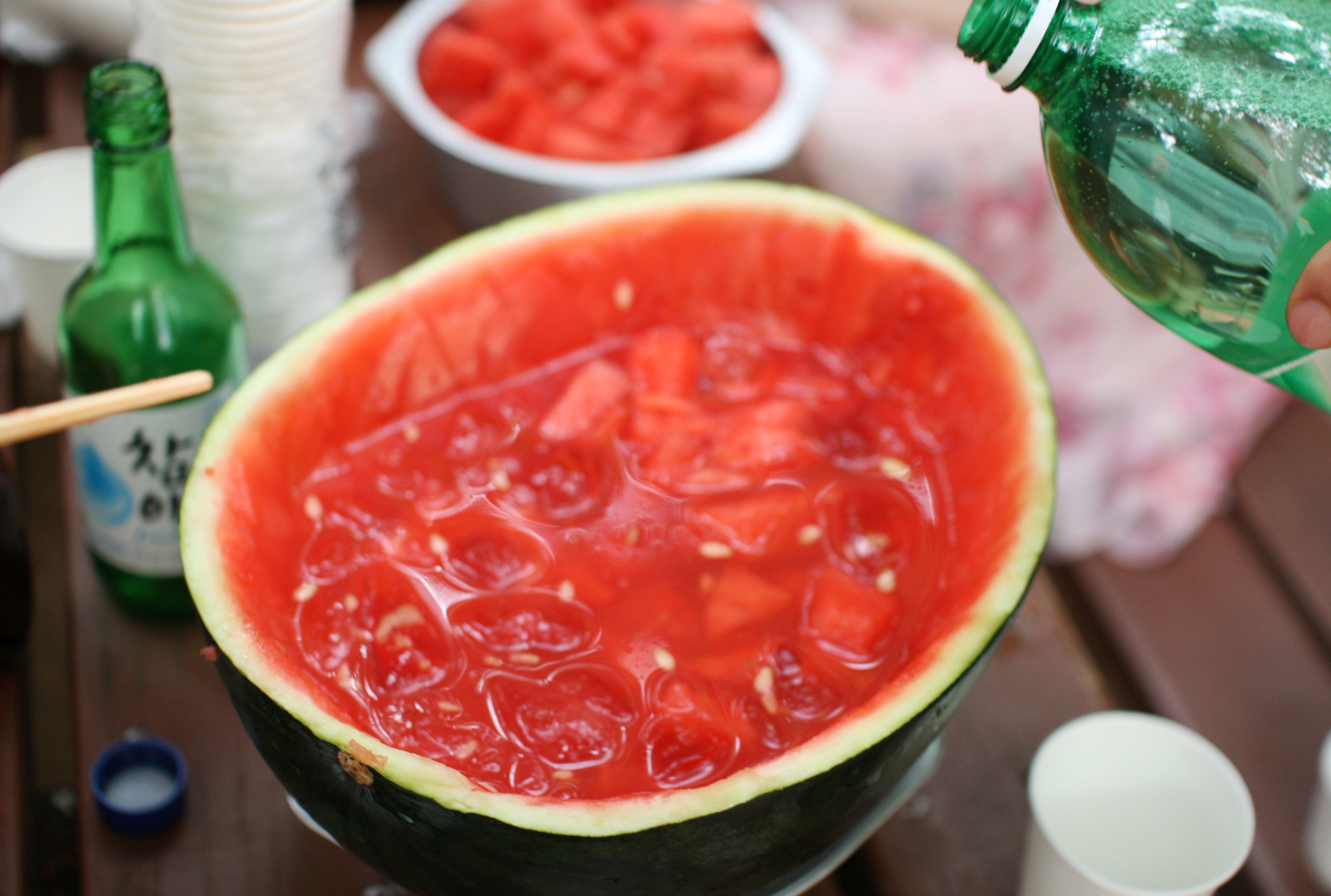그리고 이번 캠핑에서 인기만점이었던 수박화채…가 아닌 수박주!