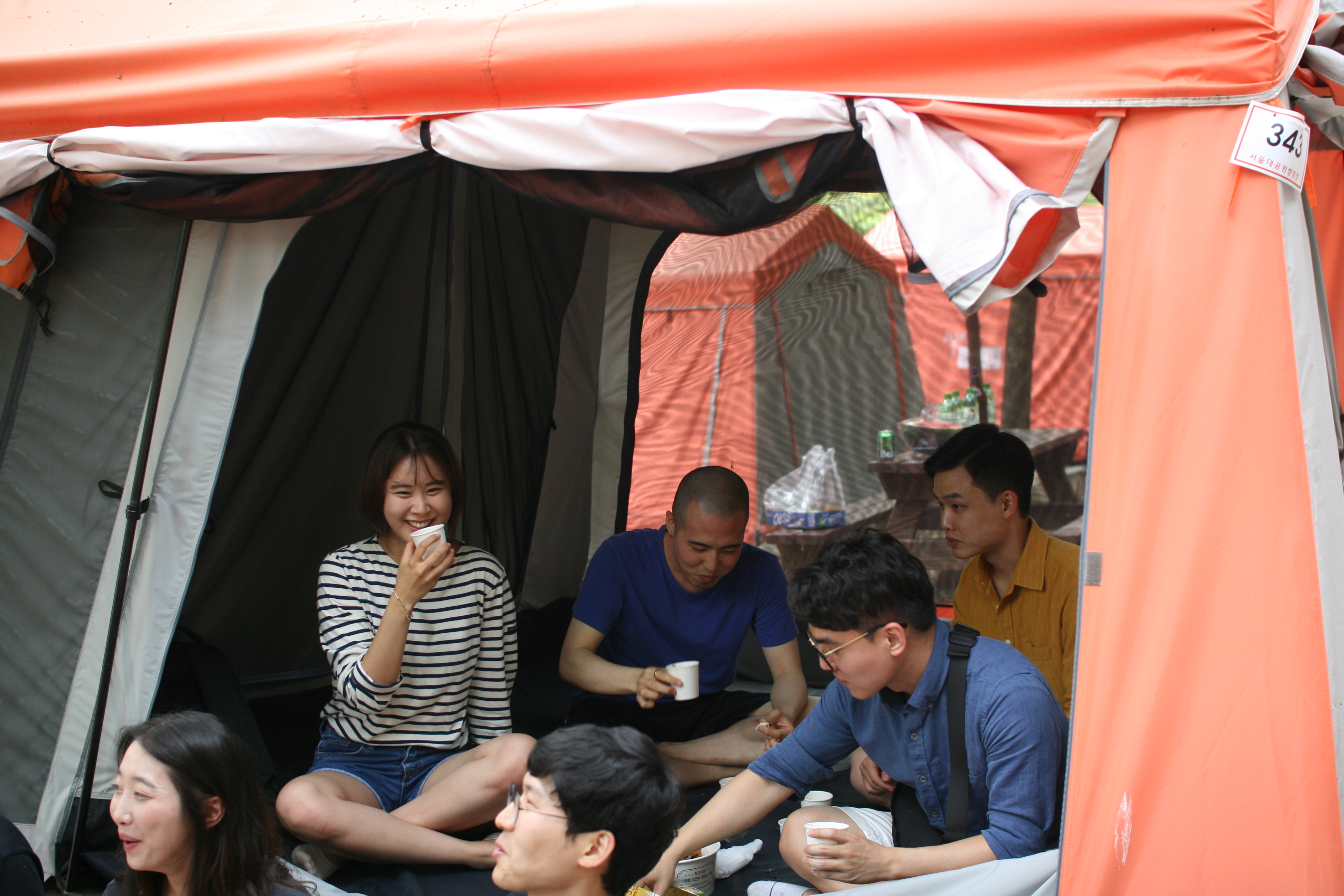 여기까지와서 머리 쓰지않겠다며 보드게임을 피해 텐트속으로 피신한 팀