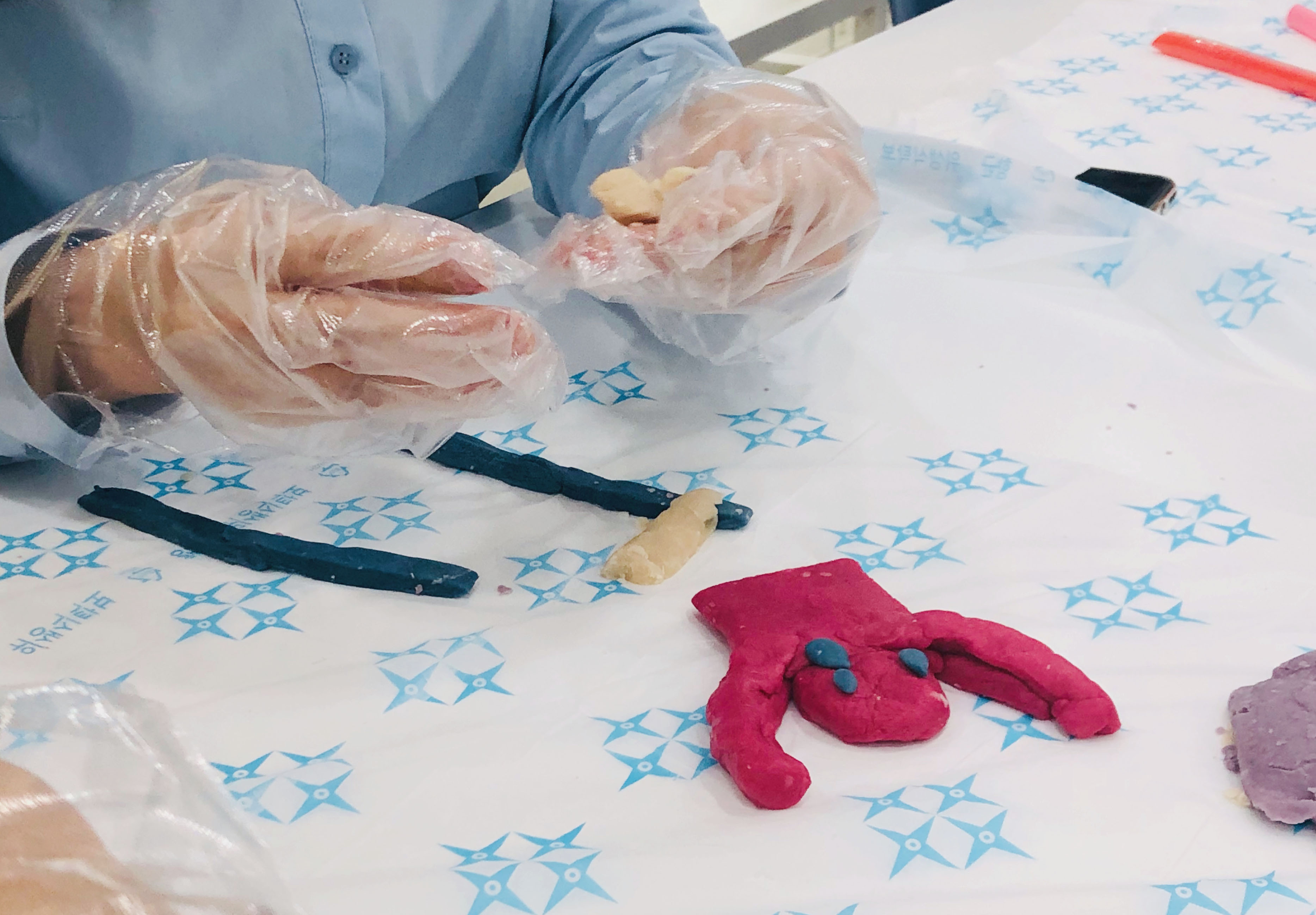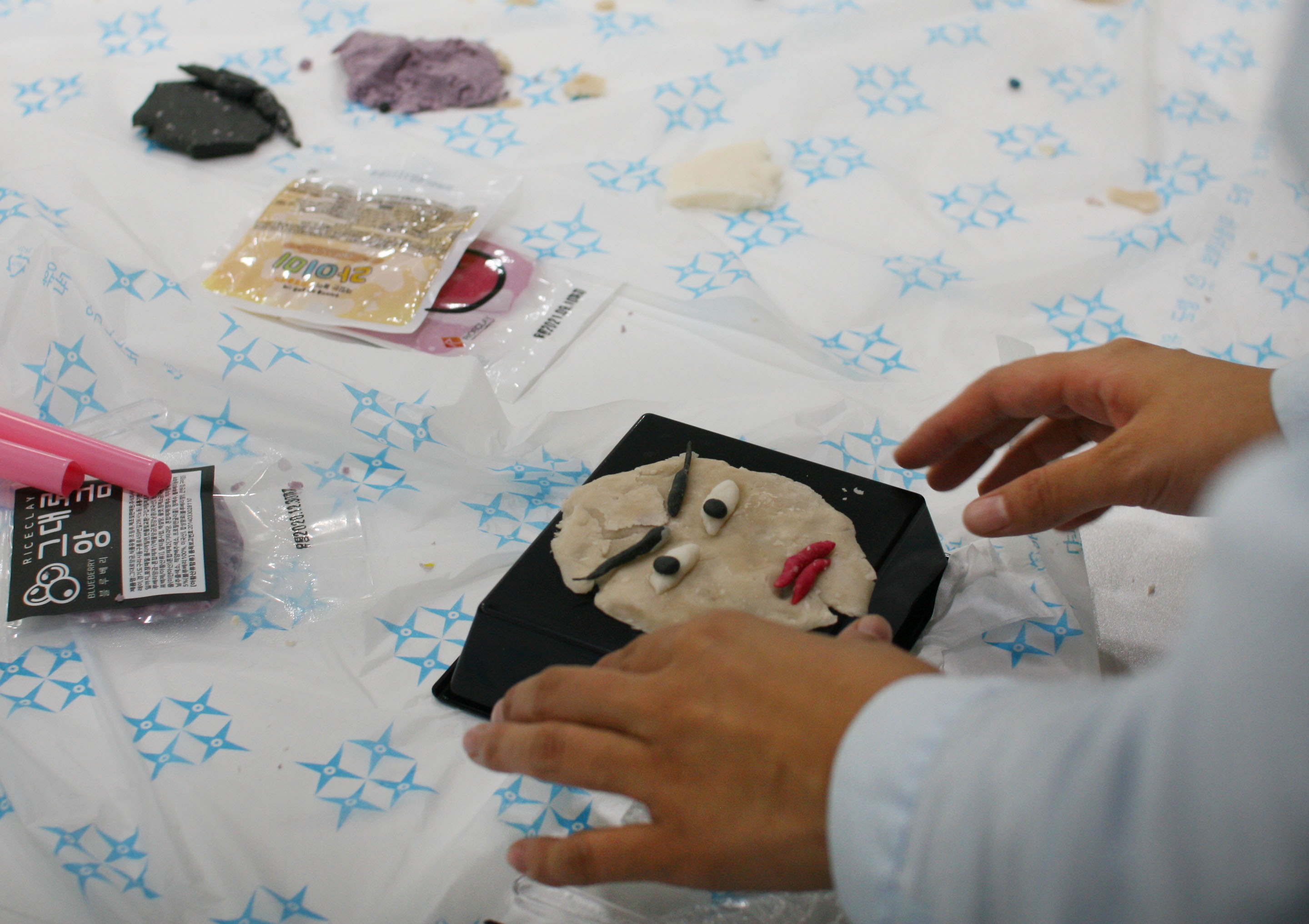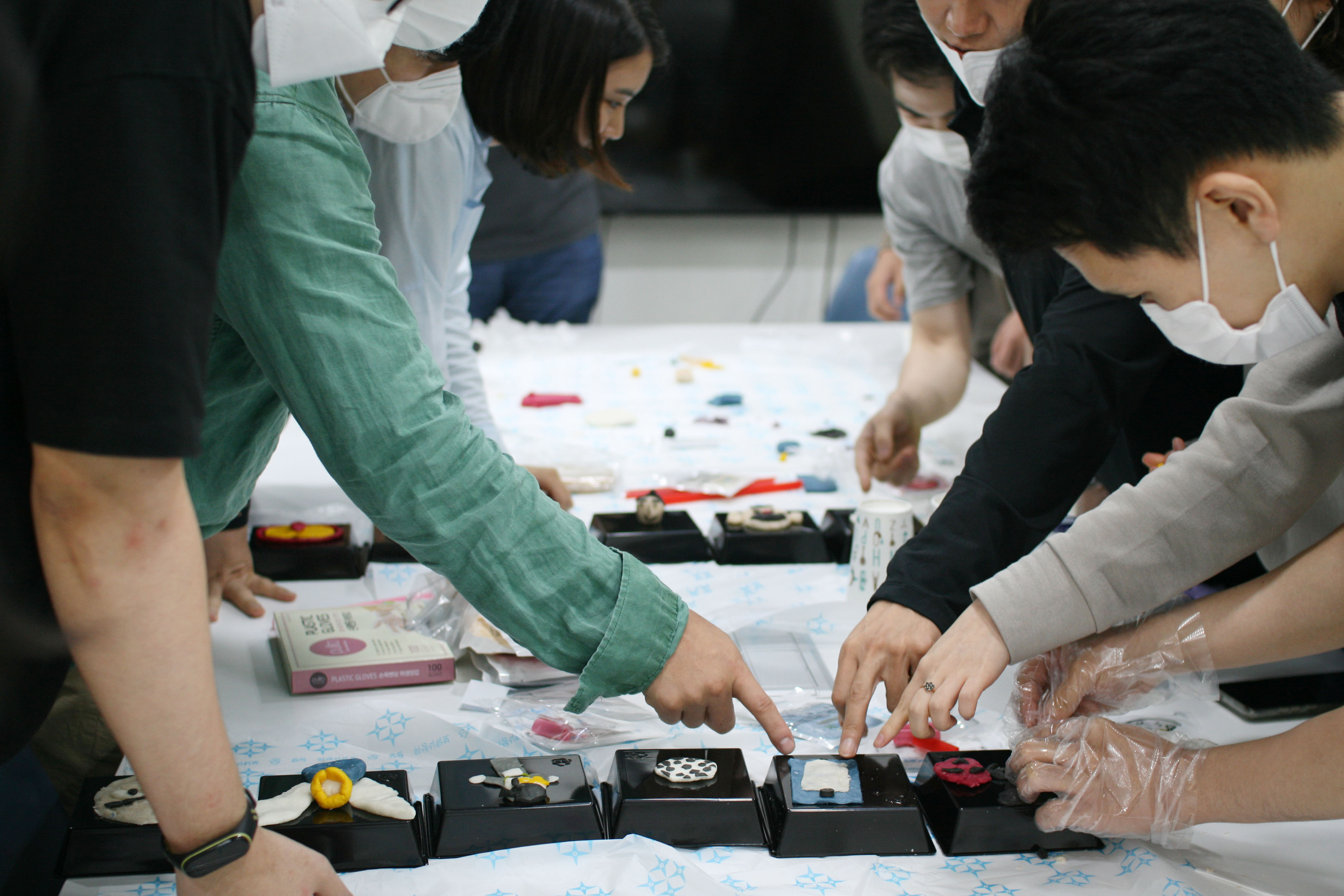 이 형형색색의 예쁜 재료들로 각 팀에서 상대편팀의 1명을 랜덤으로 뽑아 떠오르는 이미지로 송편을 만들고