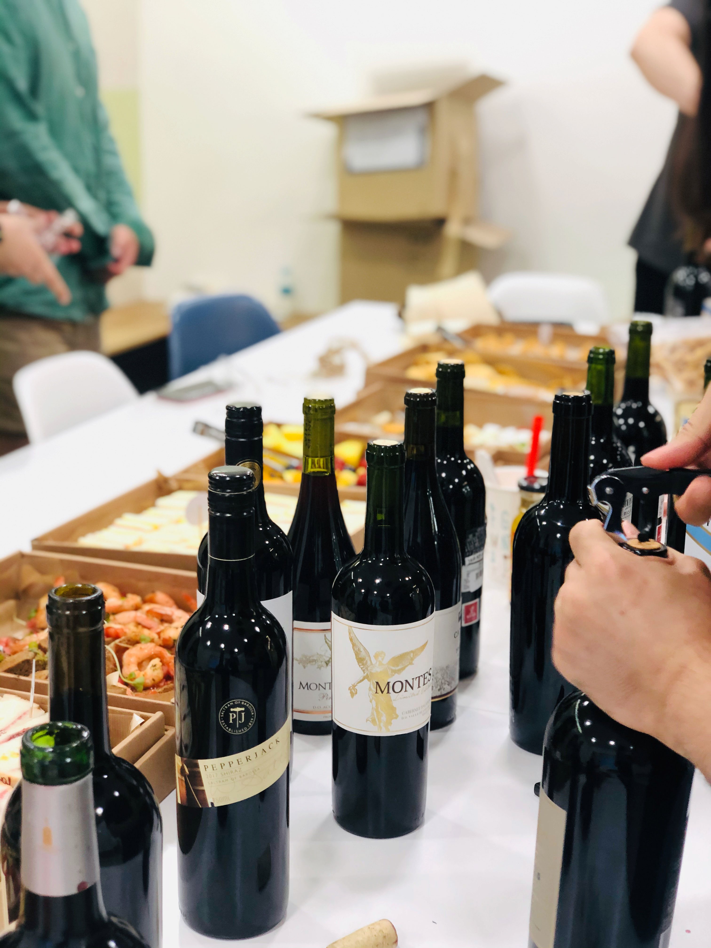 케이터링으로 고급스럽고 맛있는 안주들과 Bring your own wine 컨셉으로 각자 한 병씩 들고온 와인 🍷