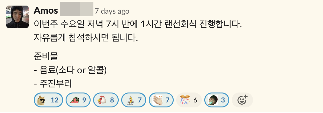 기대보다 훨씬 유쾌한 랜선 회식이었지만, 다음 회식은 꼭 오프라인으로 만날 수 있기를 바랍니다 🙏🏻