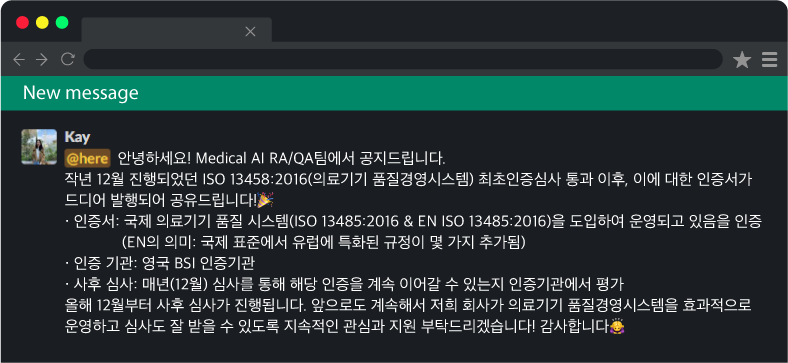 이번 의료기기 품질경영 시스템 인증을 진행하며 느낀 인사이트를 통해 AITRICS는 앞으로 의료기기 규제를 준수하며, 내부 프로세스를 효율적으로 발전시키고 안전한 제품이 시장에 나갈 수 있도록 하는 것이 목표입니다.